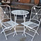 Dimensions: Table: Diam:38cm H:52.5cm Chairs: W:28cm D:38cm Seat H:31cm H:64cm (Ref:9214)